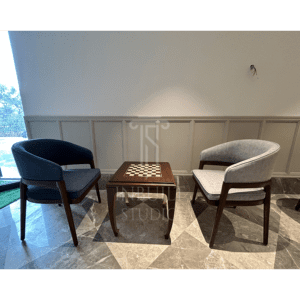 Modern Barrel Chair Set with Chess Table – Velvet Upholstery & Wooden Frame